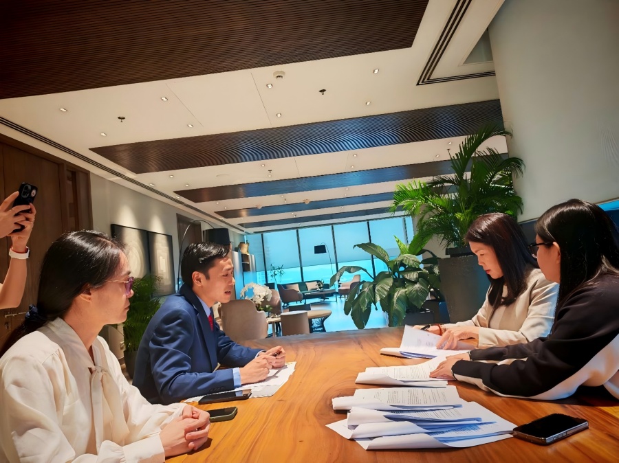 本次签约仪式通过线上线下相结合的方式举行。我司顾问罗永席、公司副总经理钱猛进、公司总经理助理伍卫东在巴基斯坦线上出席;事业部副总经理黄珊珊、姜晶在迪拜线上出席;我司菲律宾分公司代表雷尧作为授权人在线下完成签约。