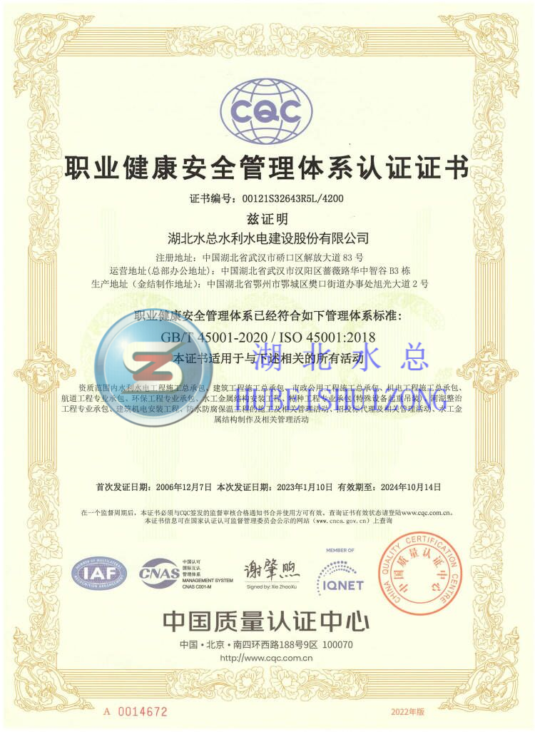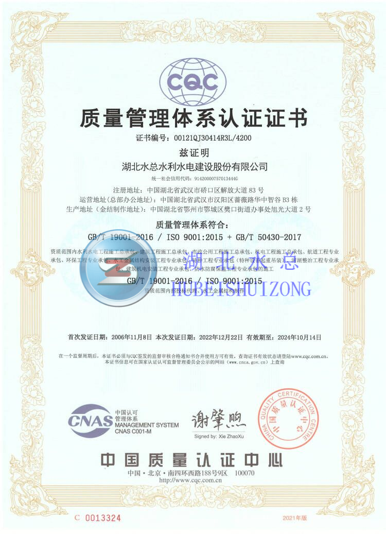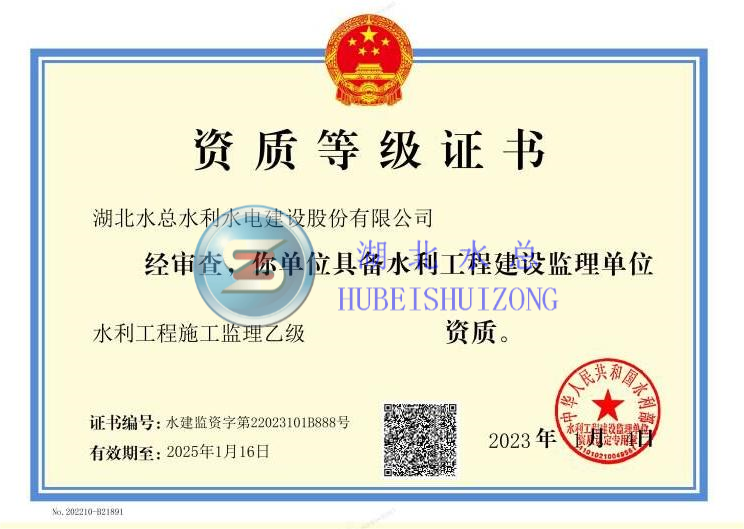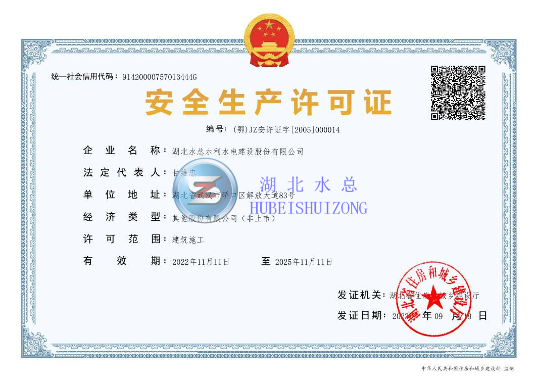 公司具有水利水电工程施工总承包一级资质、市政公用工程、房屋建筑工程施工总承包、航道工程专业承包等多项资质。拥有全国工业产品生产许可证和爆破作业单位许可证,同时还具有对外承包工程资格证书,可开展国外工程和国外经济技术合作业务。