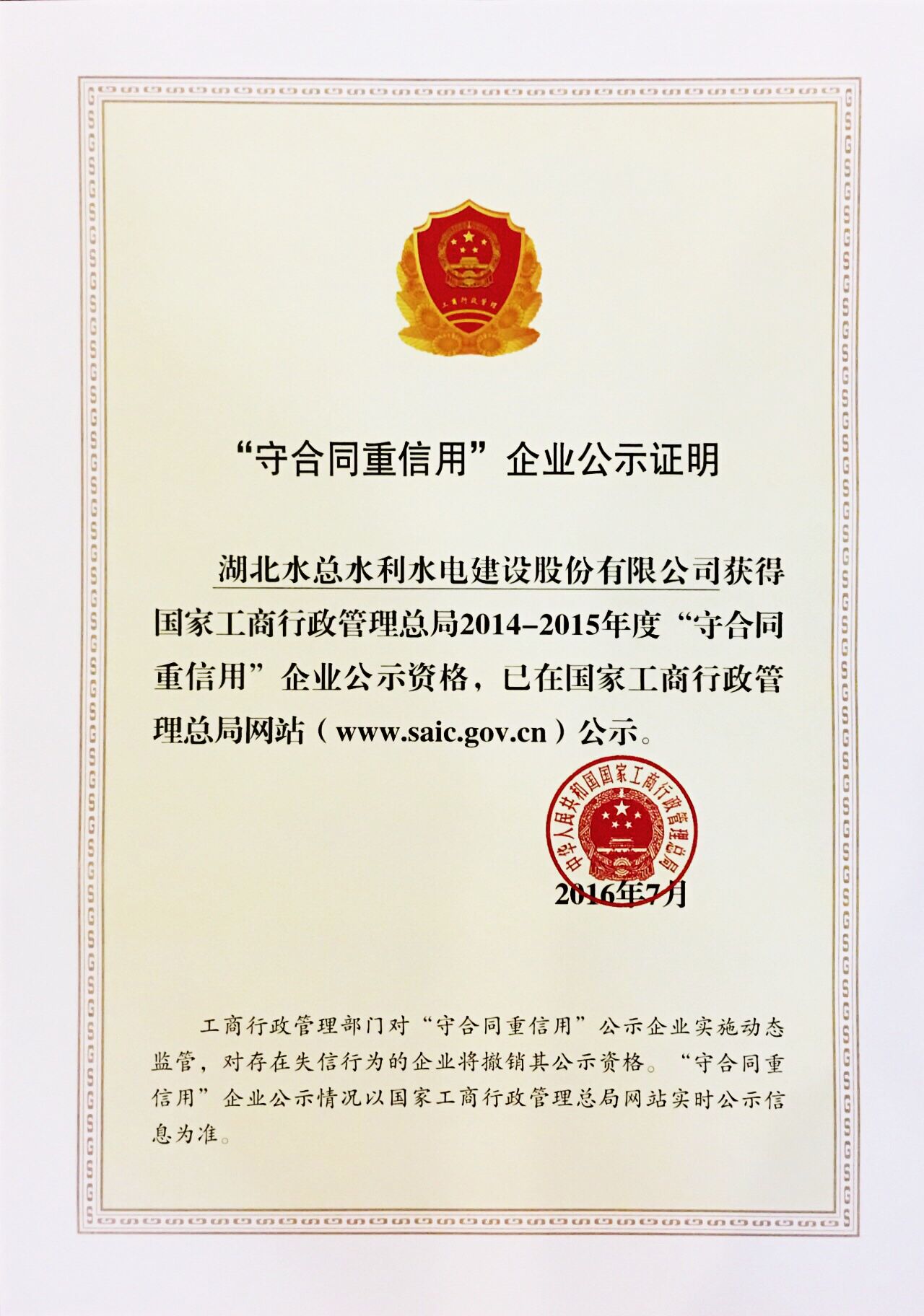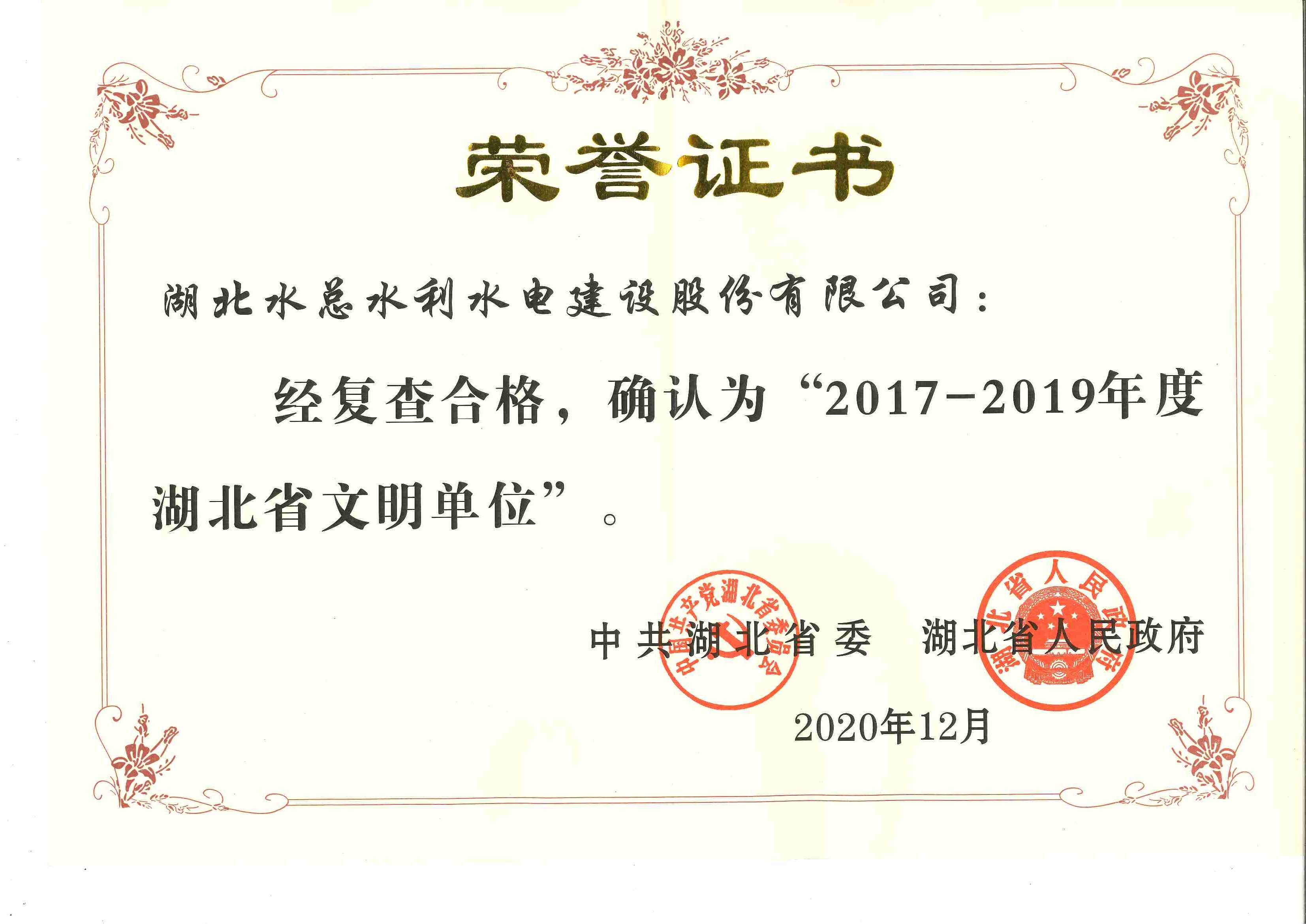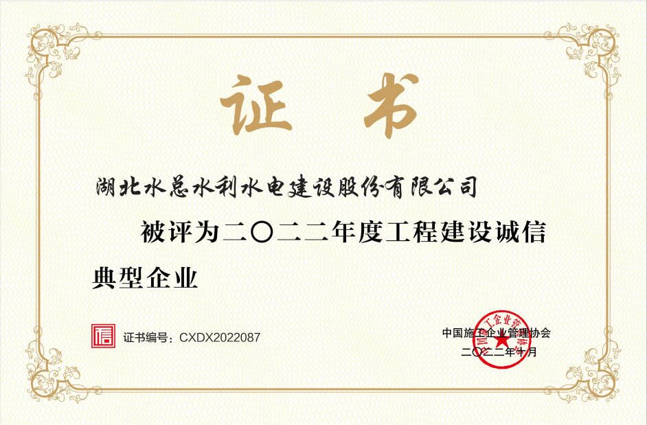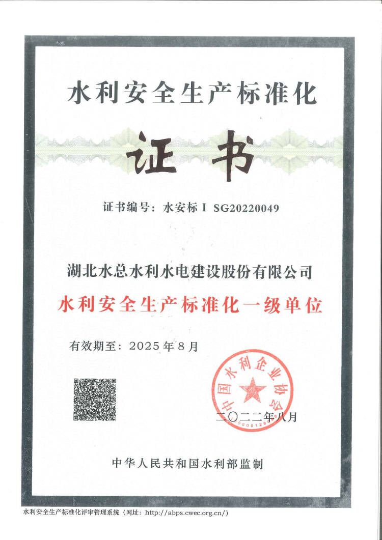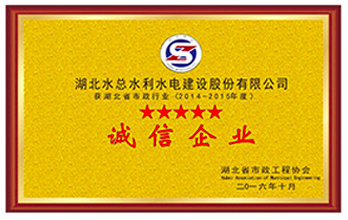 公司始终坚持“诚信为本,质量为本”的理念, 连续多年荣获“全国优秀水利企业”、“湖北省文明单位”、“守合同重信用”企业、水利水电工程施工“AAA企业”和“水利安全生产标准化一级单位”等奖项。
