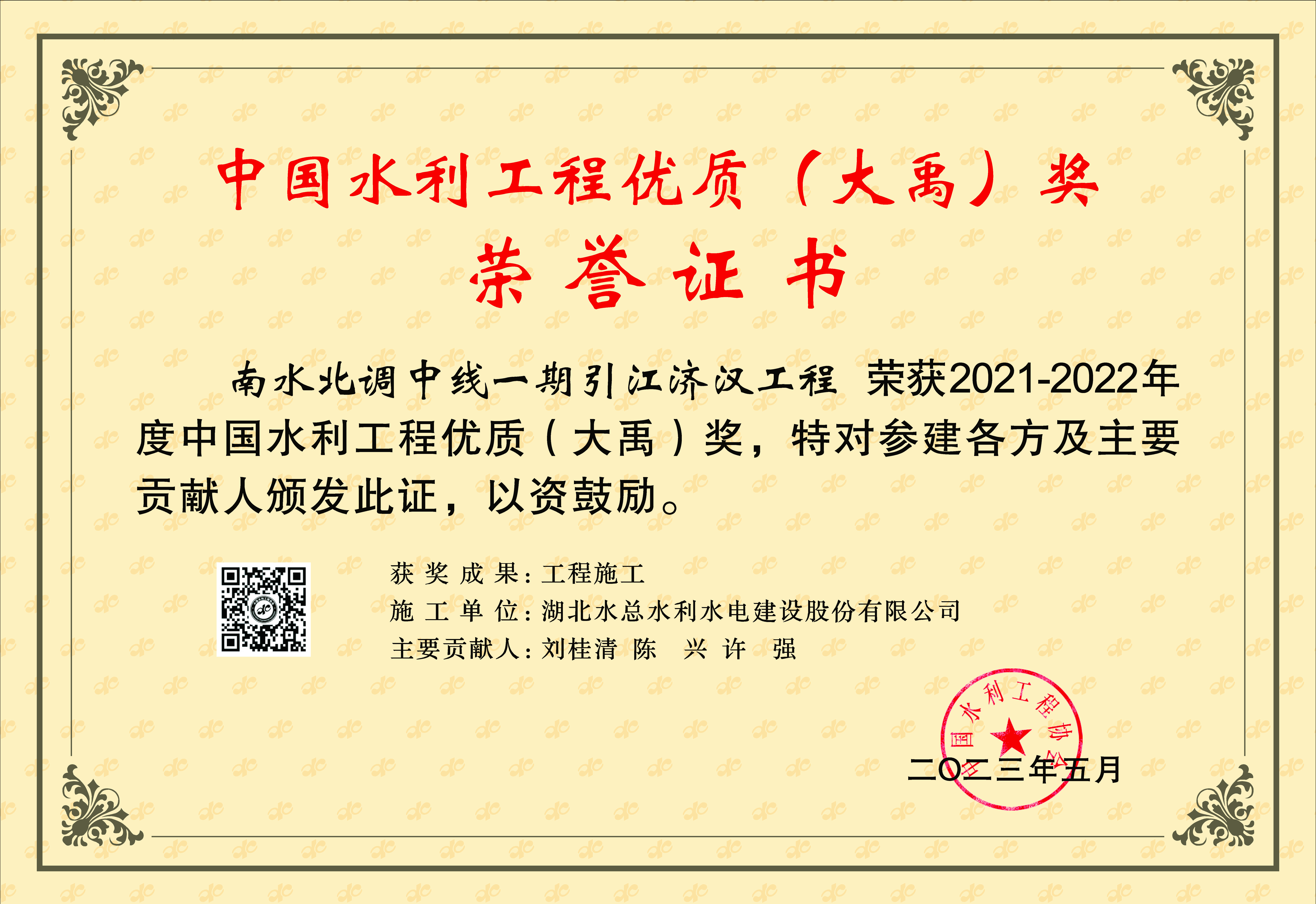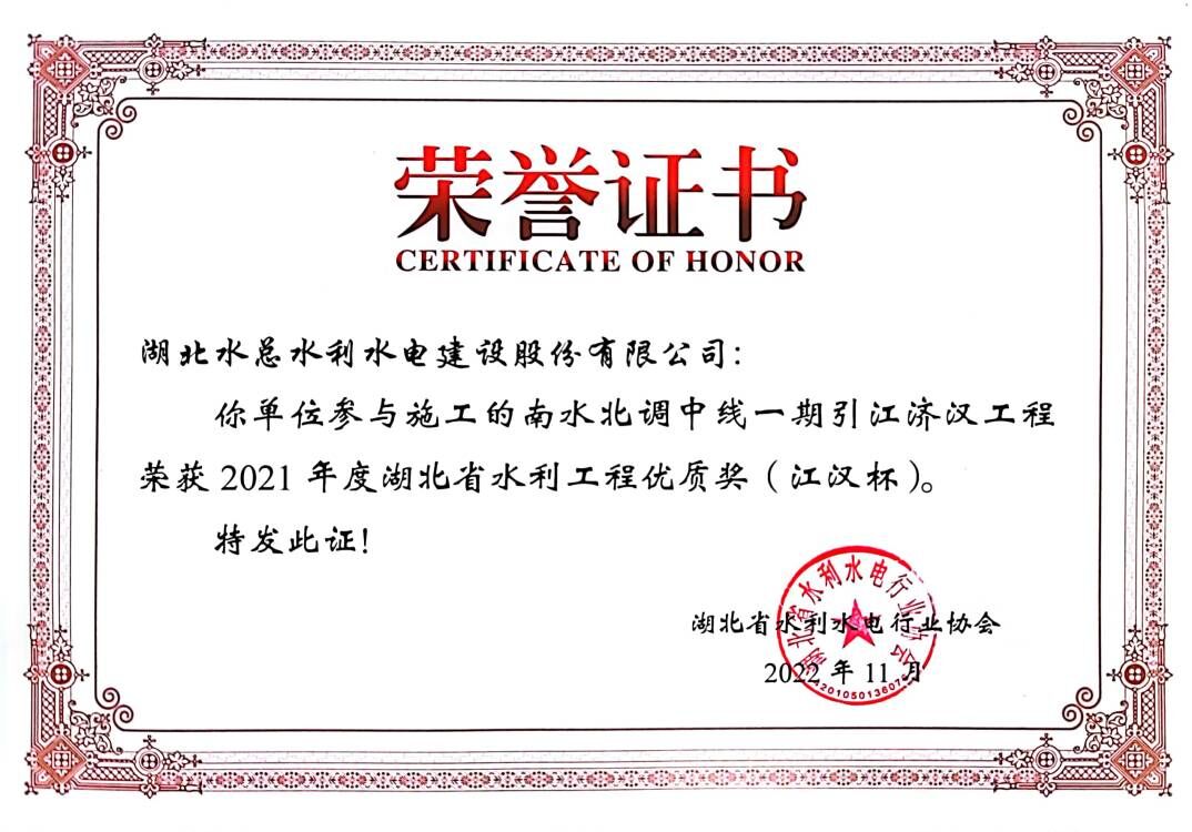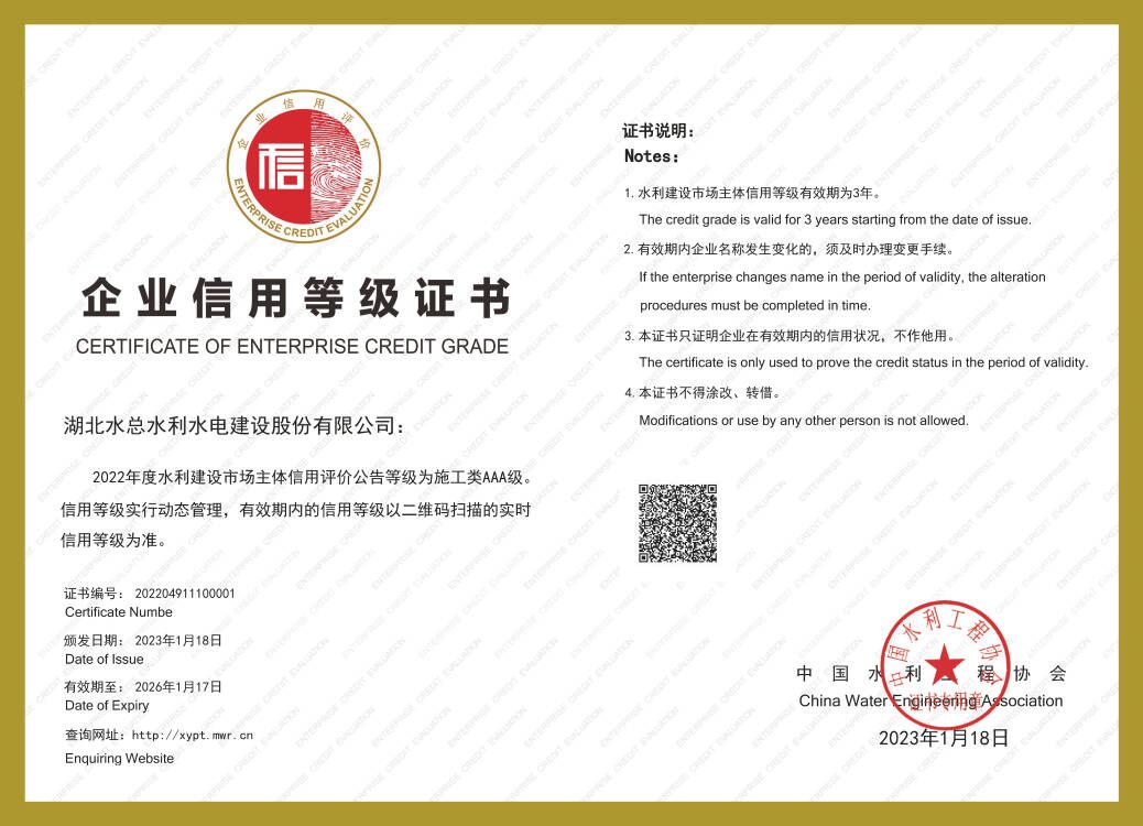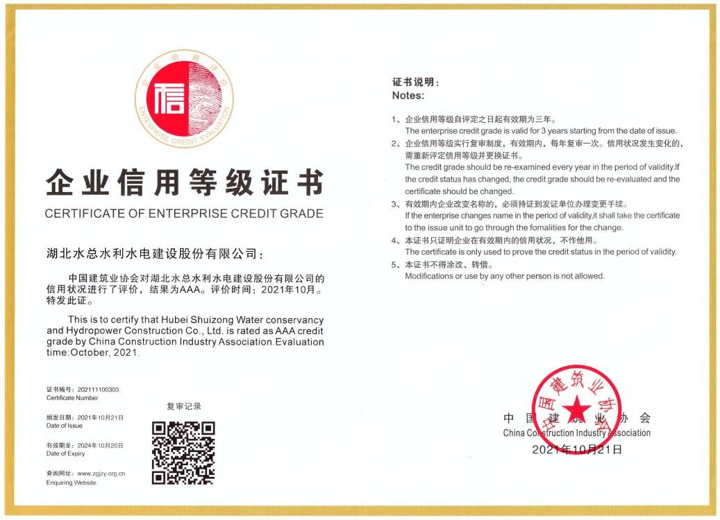 公司始终坚持“诚信为本,质量为本”的理念, 连续多年荣获“全国优秀水利企业”、“湖北省文明单位”、“守合同重信用”企业、水利水电工程施工“AAA企业”和“水利安全生产标准化一级单位”等奖项。